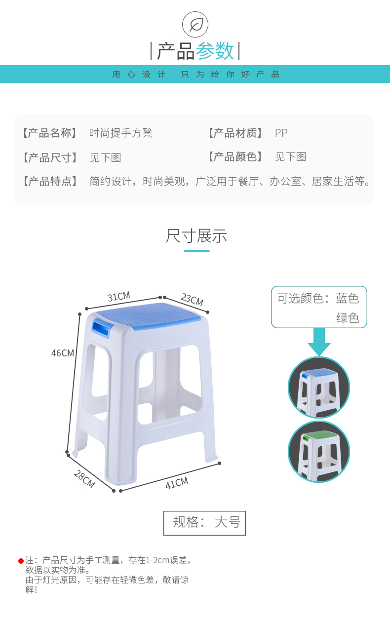商品名称:好尔(Hore)凳子椅子 塑料凳子 餐椅 带提手大号蓝色 1个装
