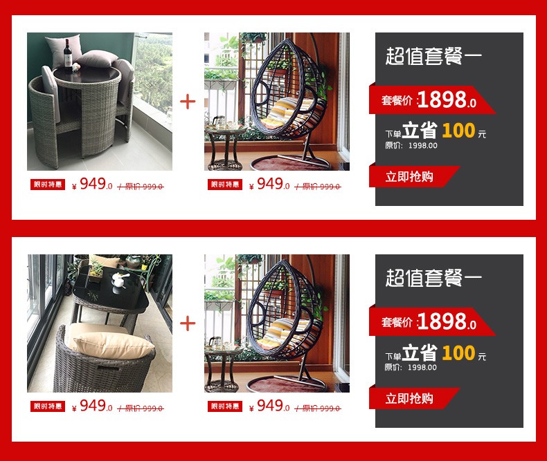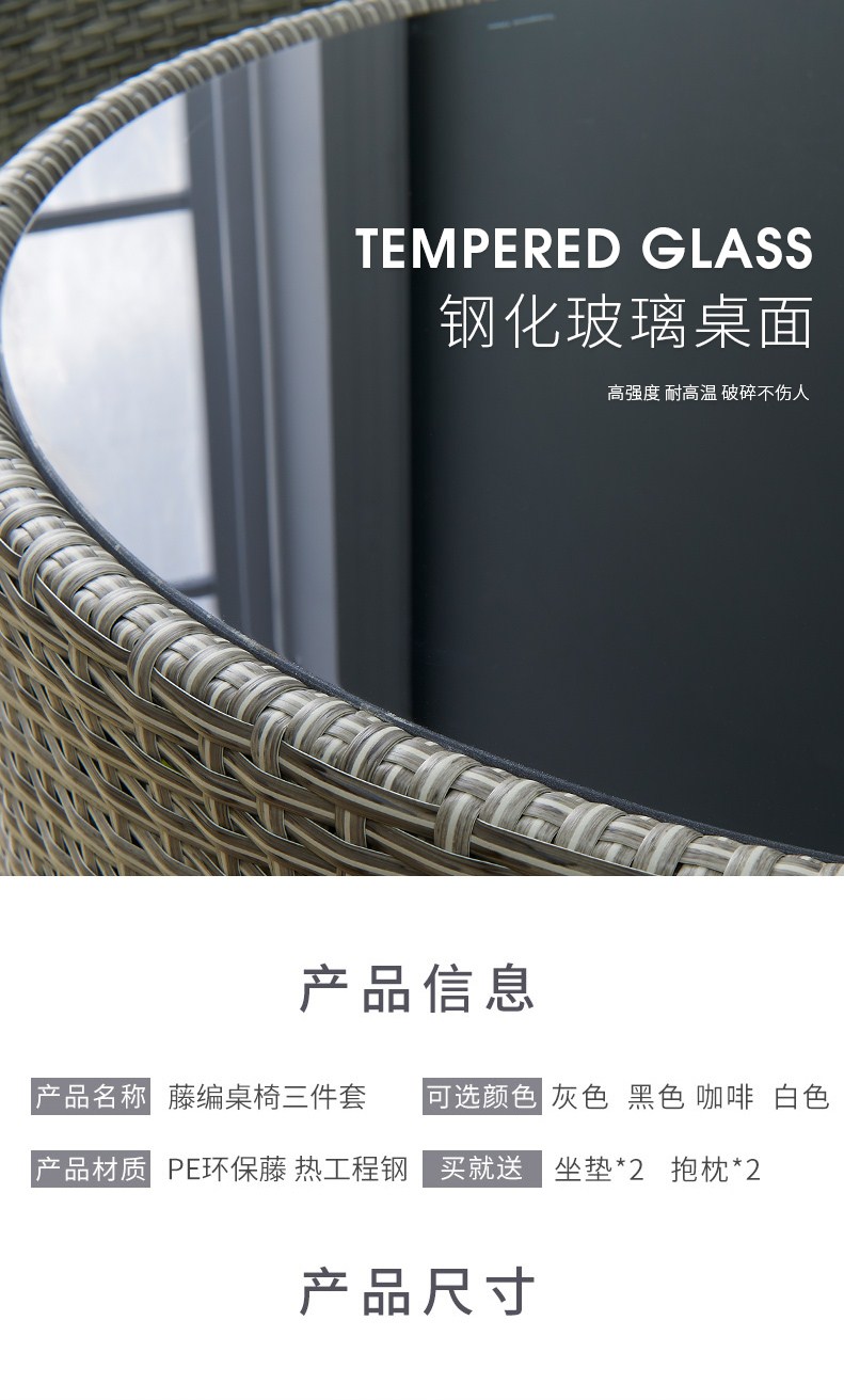 商品名称:乐系阳台桌椅室内藤椅小茶几三件套户外家具室外庭院藤编桌椅组合