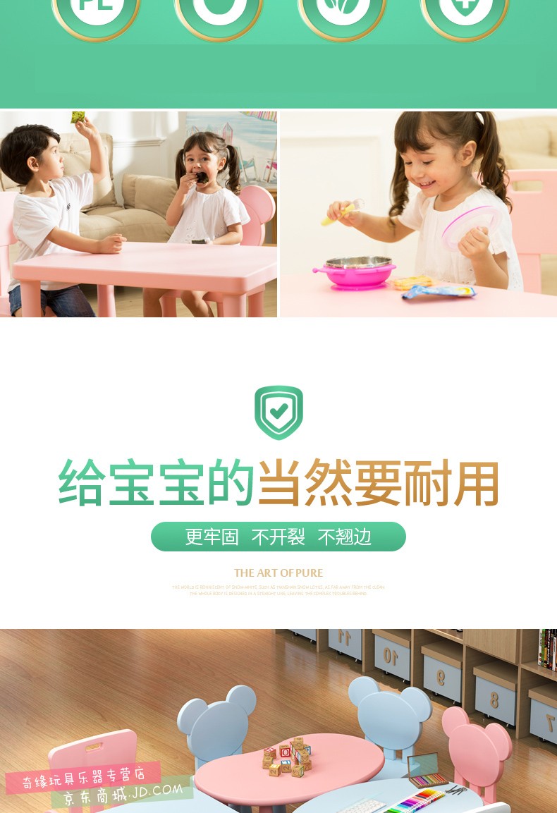 商品名称:幼儿园桌椅 儿童吃饭 豌豆四方小桌椅宝宝学习桌塑料桌子游戏桌