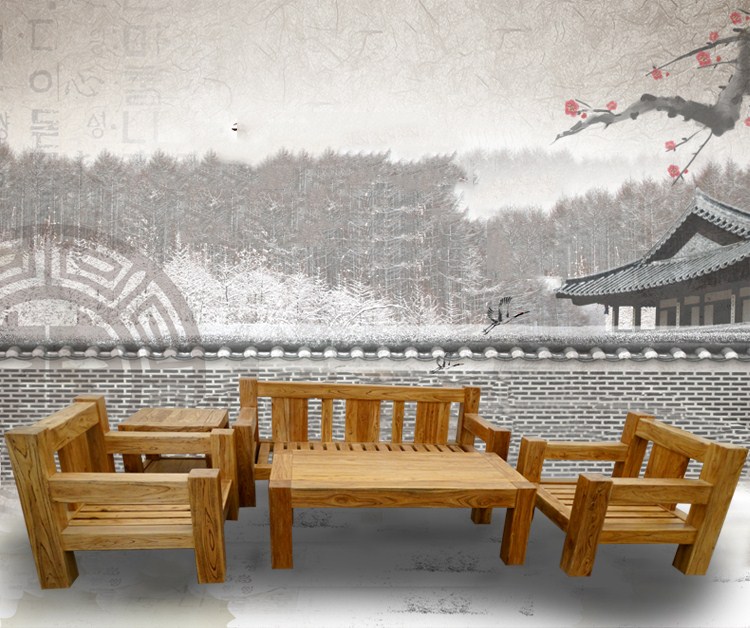 坤梵 田园环保骨架沙发实木沙发组合老榆木韩式现代客厅组合沙发