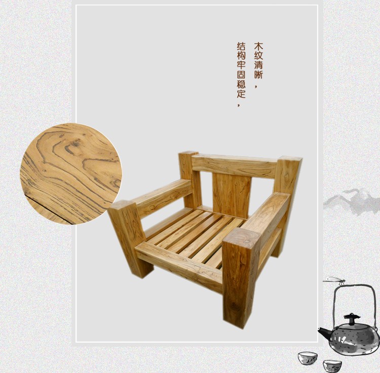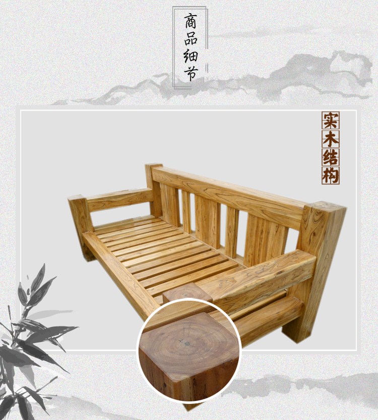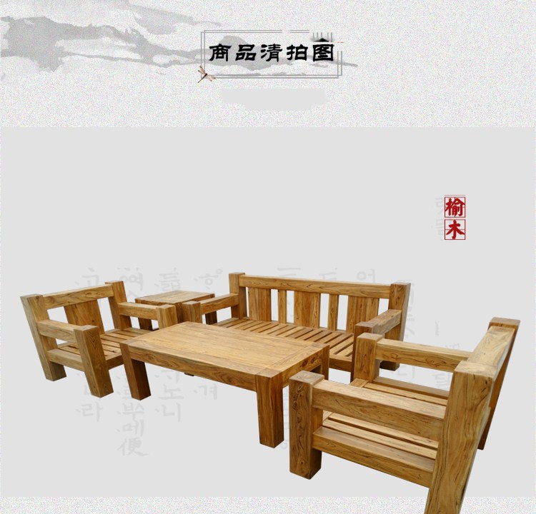 商品名称:坤梵 田园环保骨架沙发实木沙发组合老榆木韩式现代客厅组合沙发