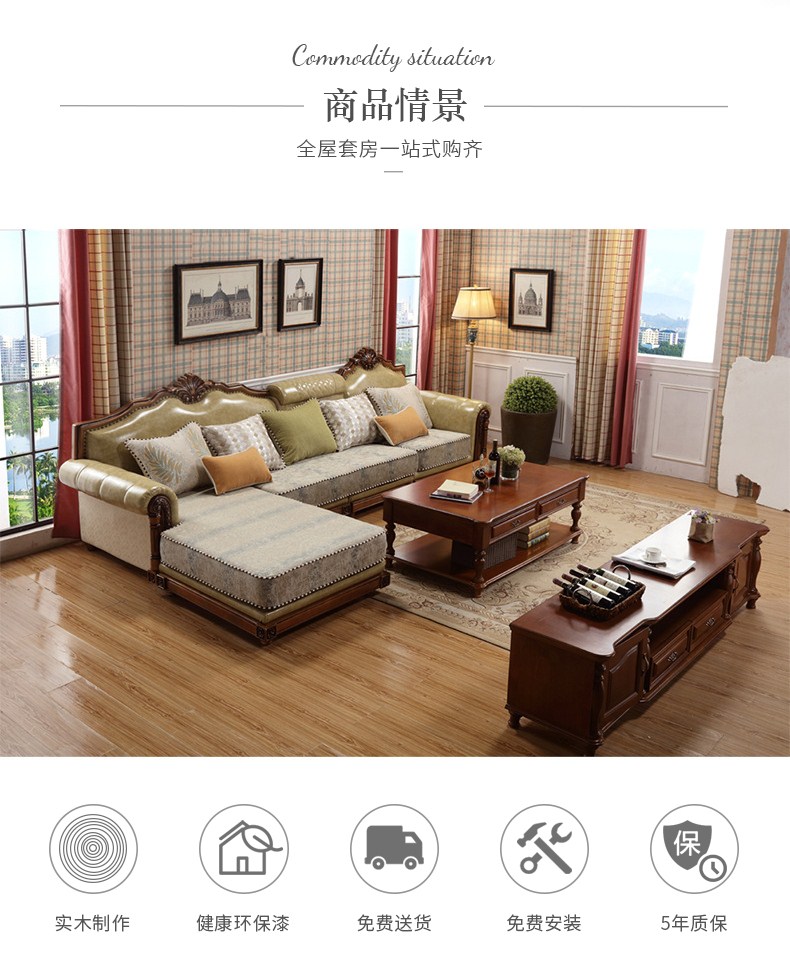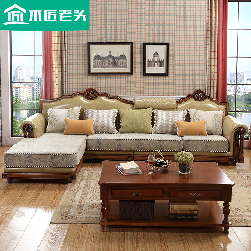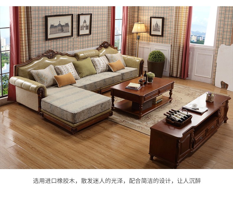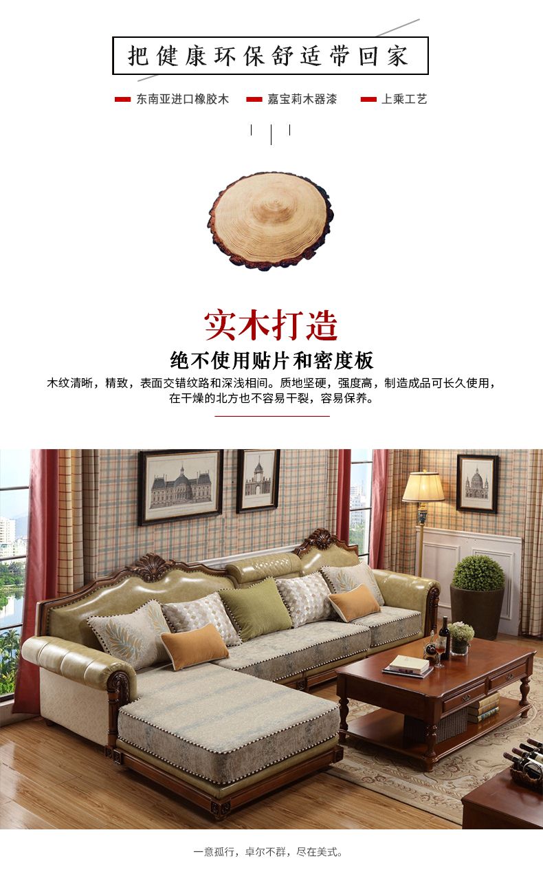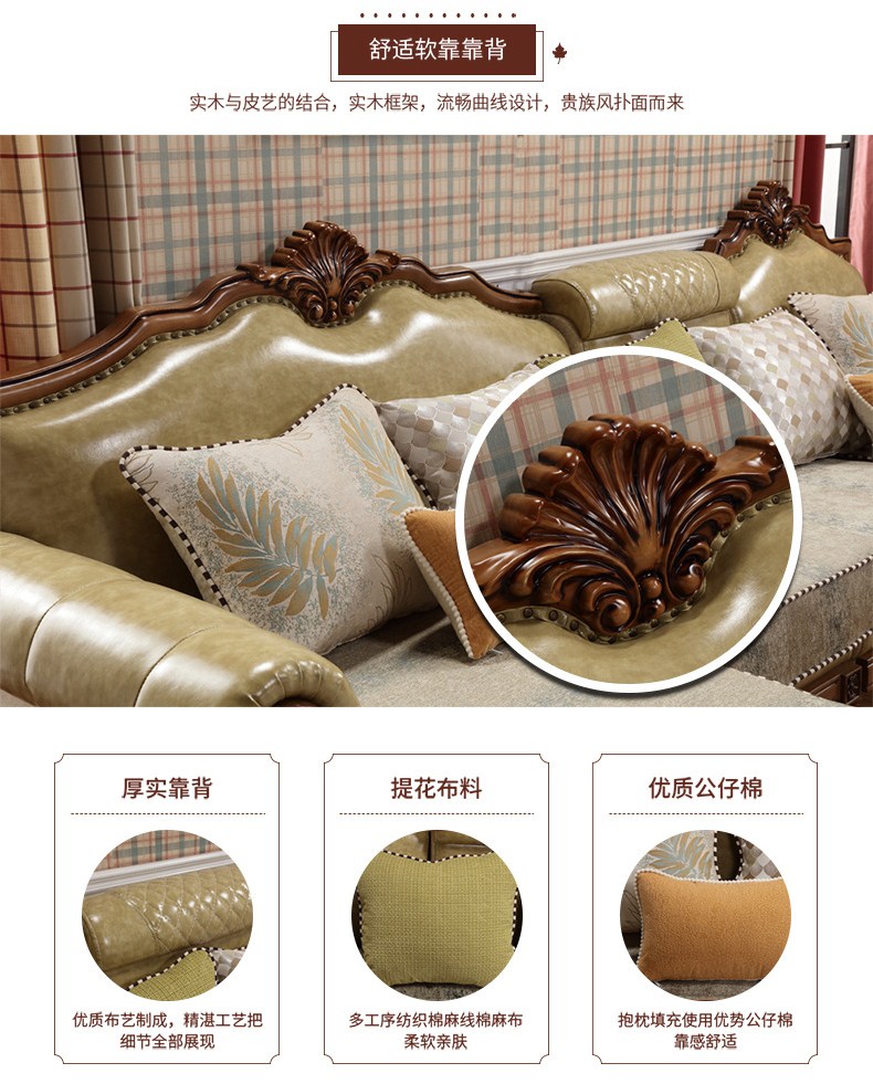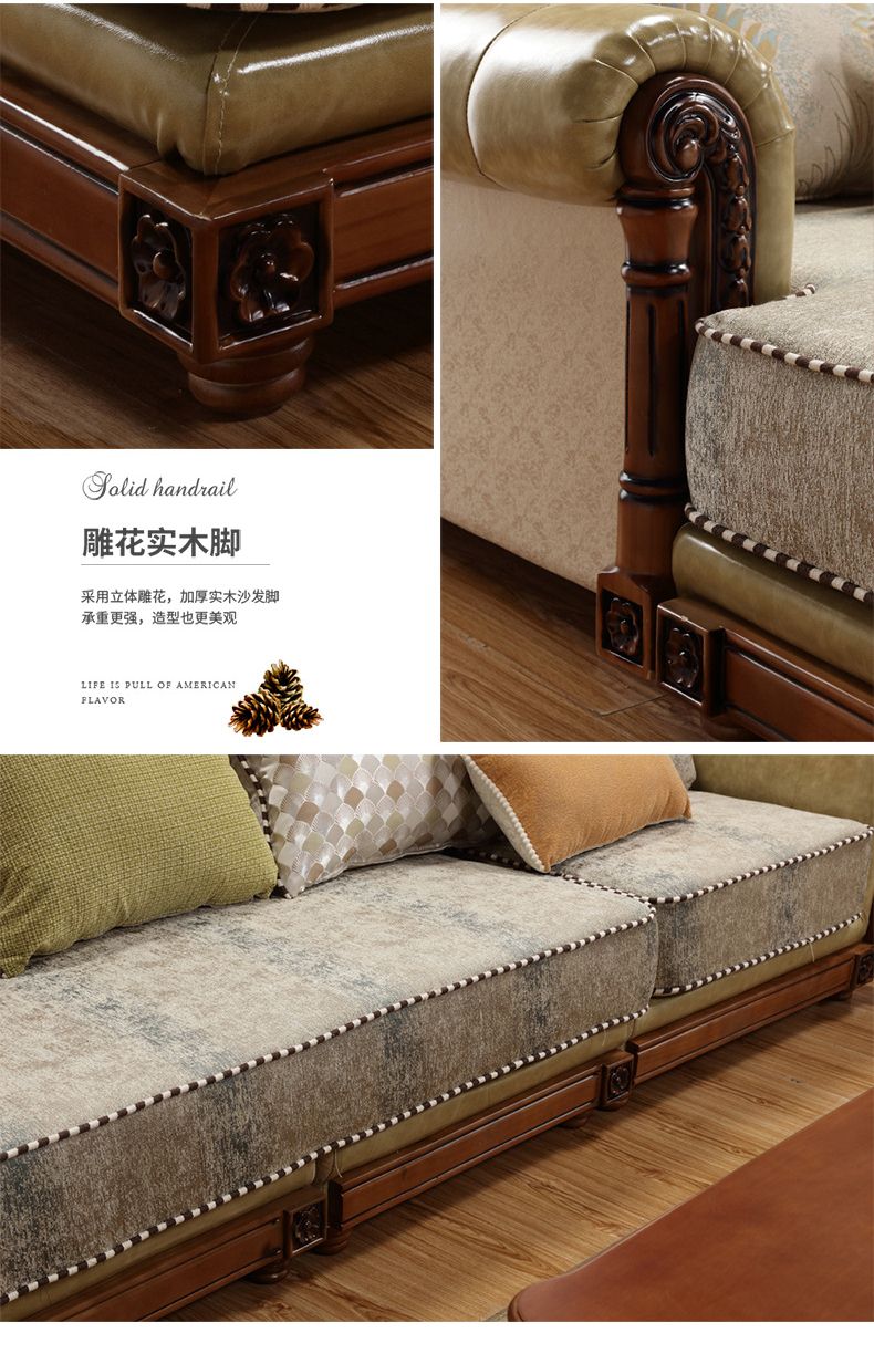 商品名称:木匠老头美式乡村皮制沙发客厅木骨架沙发油蜡皮贵妃组合实木沙发