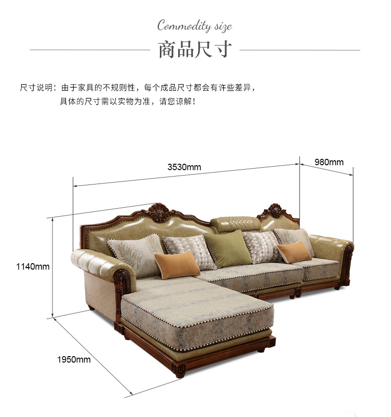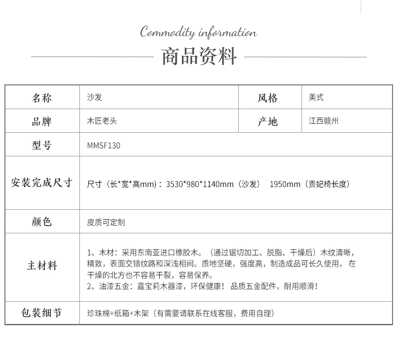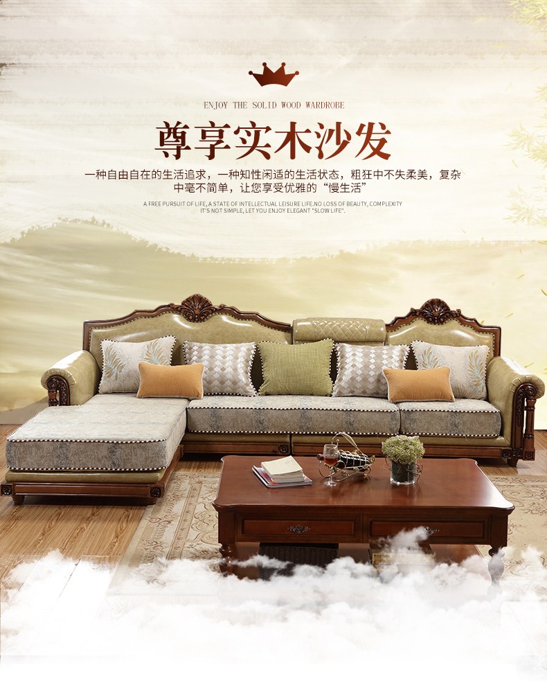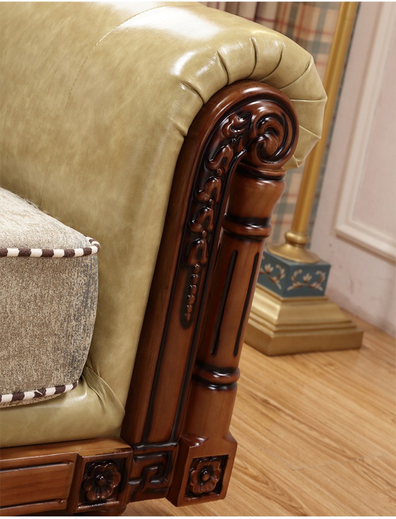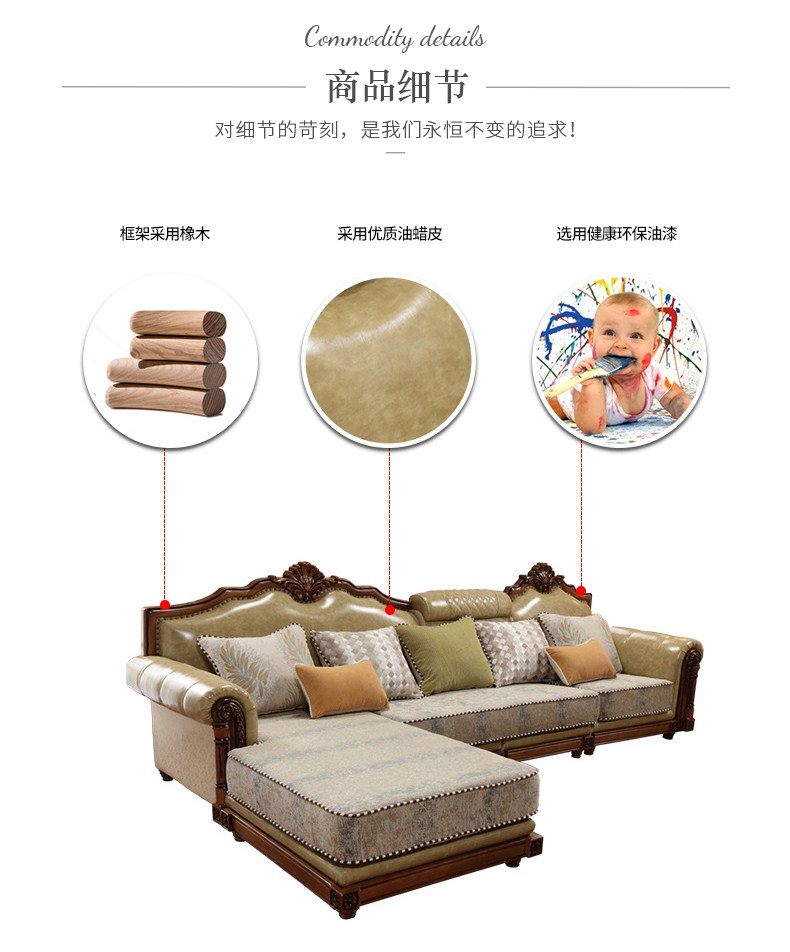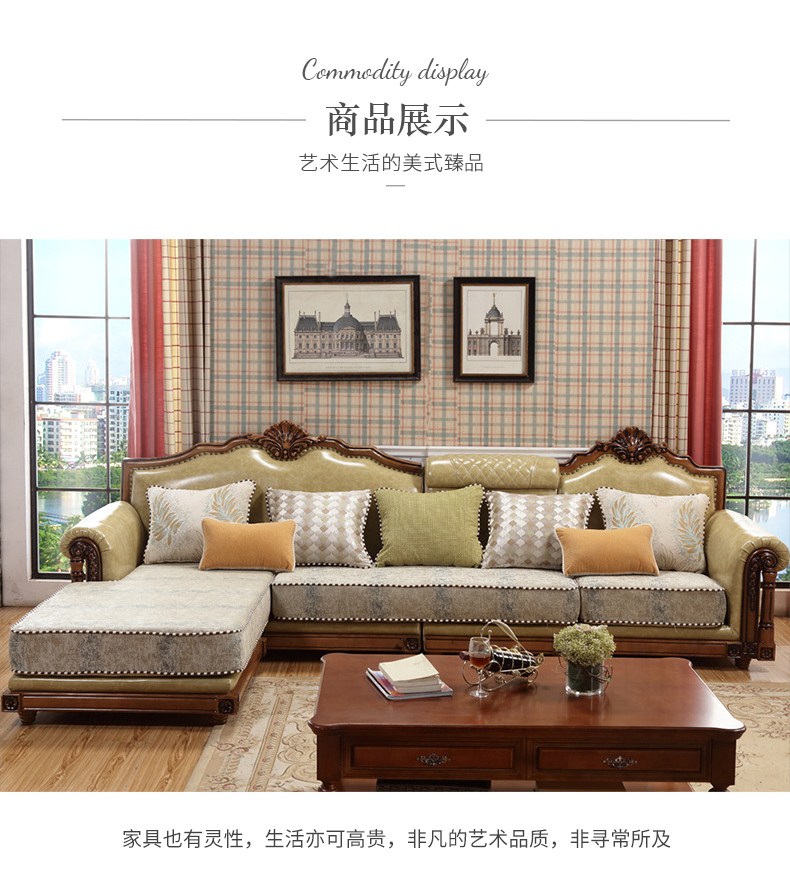 商品名称:木匠老头美式乡村皮制沙发客厅木骨架沙发油蜡皮贵妃组合实木沙发